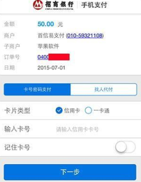 可选择信用卡或一卡通,填写卡号进入下一步。