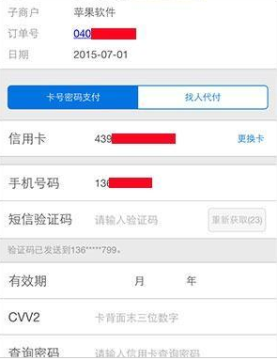 根据提示输入短信验证码、有效期、CVV2和查询密码确认支付。