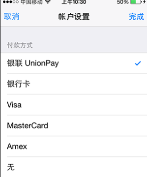 3、 跳转至AppStore的充值界面后,选择充值数额,以及您所绑定的银行卡(如未绑定银行卡可按照AppStore的提示进行绑定)