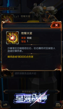 作者:qqtn小影 人气:0在《星河战神》中,机甲的强弱,最基础取决于大家的等级。大家的等级是机甲可提高到的最大等级,所以,自身等级必须优先提升上去。而机甲等级的提升将全面提高其攻击和防御力,让机甲在通关各种关卡时更有战斗力。我们可以使用各种档次的经验球对机甲进行升级,经验球的档次越高,提升的经验值就越多。沙漠领主在游戏中就是一个非常不错的机甲,今天,将带领大家来看看《星河战神》中热门机甲沙暴领主的高阶养成与培养策略!