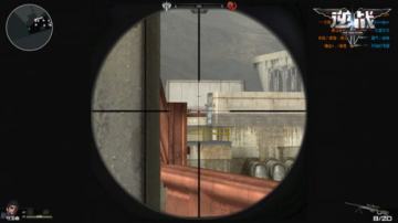 接下说另一个点,这个点暴露在对方的瞄准镜下,不过两边有掩体可以掩护,但是不要站上台阶而是半卡在那,可以把通道进行全面监控,并且不让对方给你爆头了。