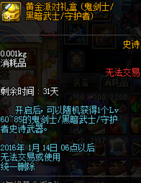 DNF黄金派对礼盒开85SS几率测试 结果你懂的
