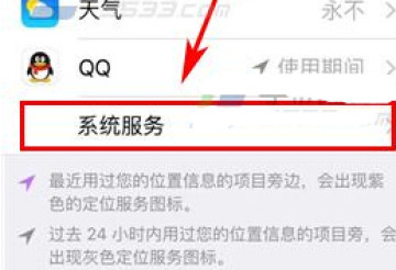 2、接着点击【定位服务】,再点击【系统服务】。