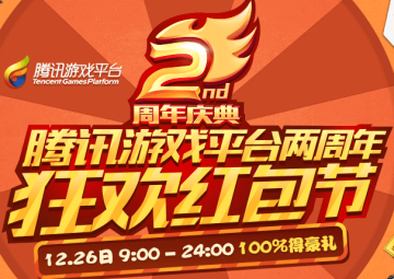 作者:qqtn强柔 人气:0腾讯游戏平台两周年狂欢红包节活动今日正式开启!12月26日,也就是今日9:00-24:00登录TGP的用户即可抽取奖品,100%中奖!而且邀请新注册的用户还可以100%获得5Q币,不仅如此,还有双倍经验等你来体验。还在犹豫什么,错过今天,可就没有该福利了哦!