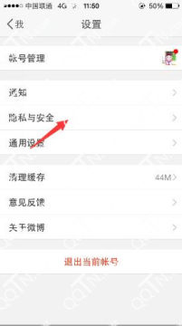 1、首先,打开微博客户端,找到我-设置中的隐私与安全,如图: