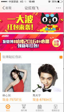 首先,你需要下载最新版微博客户端,其次微博需绑定手机号,然后打开微博,在发现中,可以看到让红包飞的入口,然后在页面下方就可以看到明星们发的红包。