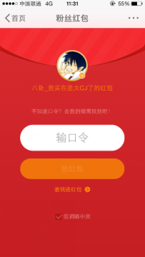 大部分明星红包是没有口令的,而人气博主则是需要输入口令才能够抢到红包的。口令可在该博主微博评论中找到,现金红包也就可以收入囊中啦!