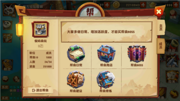 加入帮会福利:通过帮会各种玩法获取帮会贡献值,购买帮会上回商店道具或者进行帮会修炼。