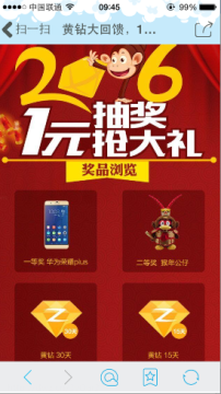 从活动规则中,我们可以看出,活动奖品有黄钻、猴年公仔以及华为荣耀plus