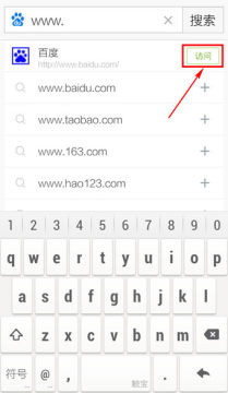 2.输入【www.】时,百度给出下拉,网址后标注【访问】的可以直接打开