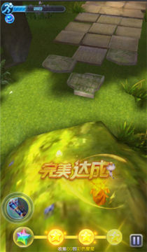 后半段路程会有很多石墩,特工papa建议大家全走石墩上,可以收获大量彩星。这个时候大家应该都达到2星目标了,到这里离3星闯关成功只有一步之遥了。因为这段路上彩色星星非常多,特工papa在一眨眼的功夫里就获得了3星。