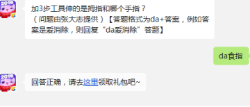 天天爱消除加3步工具伸的是拇指和哪个手指?