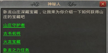 玩家击败五大名将之后,就会在【70.35】处刷出卧龙庄主,玩家战胜卧龙庄主并探索庄主遗骸获得庄主令牌,将五色夜明珠以及庄主令牌交给卧龙山庄神秘人NPC完成卧龙之力任务便可永久提升自身能力一次。