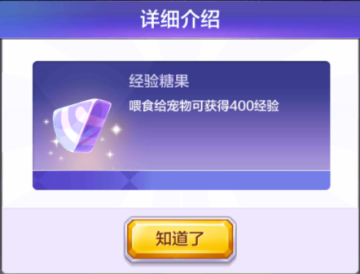 作者:qqtn可乐 人气:0天天酷跑3D材料背包中会看到一个经验糖果的物品,顾名思义,是用来增加经验的。不过不是给人物角色,而是给宠物增加经验,每一颗经验糖果可以给宠物增加400经验点,帮助宠物快速升级。