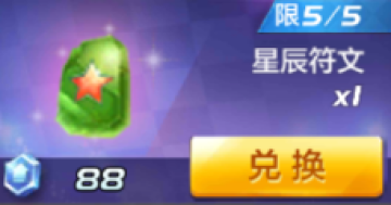 在积分商城中,星辰符文兑换一个,需要88积分,限5/5