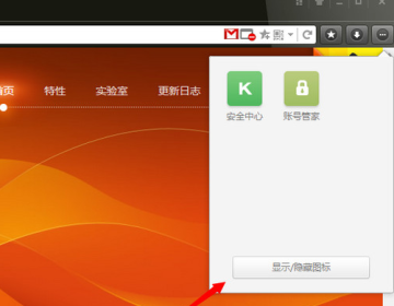 一、点击猎豹安全浏览器右上角【更多功能】按钮,选择”显示/隐藏图标“