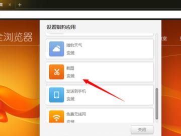 二、下拉选择【截图】,点击”安装“安装截图功能