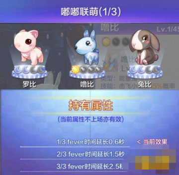 集齐嘟嘟联萌的三只萌宠,可以延长fever时间。