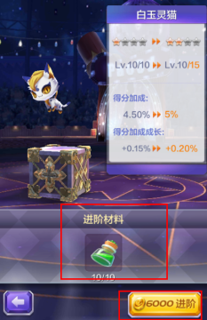 进阶成功之后,宠物的等级上限、得分加成都会提升。