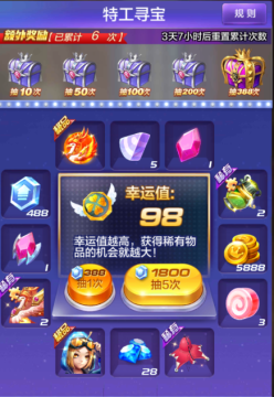 1、幸运值越高,获得稀有物品的机会越大,因此抽的越多,寻到宝物的几率也就越高。