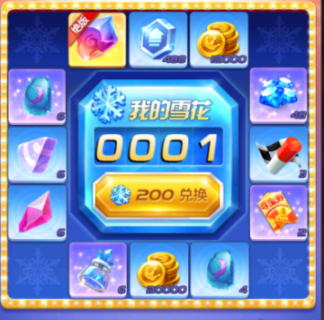 奖励一共有12个,每兑换一次奖励需要花费200雪花,全部奖励就是12*200=2400雪花,每天获得雪花上限为500,也就是得花费2400/500=4.8天才能完成。