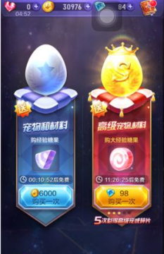 另外一种就是高级抽奖了,高级抽能有机会获得大经验糖果和高级宠物碎片,花费98钻可以抽一次,也可以第二天再次免费抽一次。每5次高级抽必得高级宠或 碎片。这里就是玩家们主要获得宠物与经验糖果的地方了。