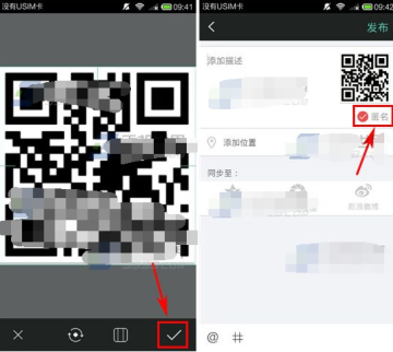 2)从相册中挑选一张照片进行下一步,裁剪好点击【√】,在编辑文字页面,勾选上【匿名】的按钮,即可发布。(如下图)