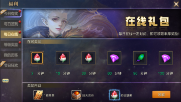 在线礼包,每日在线一定时间,即可领取丰厚奖励!