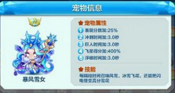 技能:每隔段时间召唤风雪,冰雪飞花,还能把闪电怪变高分雪花