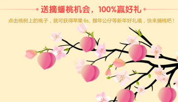 活动期间,在活动页面开通年费会员的用户不仅可以获得相对应的成长值,还能够获得摘蟠桃的机会,奖品有苹果6S、猴年公仔等新年好礼,100%有奖,小伙伴们快来参与吧!