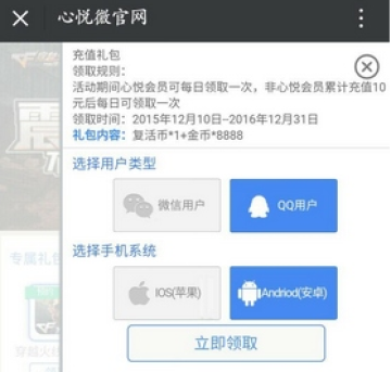 第二步:关注心悦俱乐部后,进入心悦微官网。