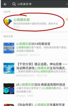 第一步:打开微信,搜索公众号【心悦俱乐部】