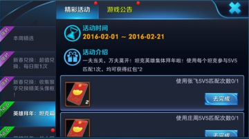 活动期间,玩家们使用每个英雄参与1场5V5,均可获得英雄给的红包*2(每个英雄只能参与1次)。