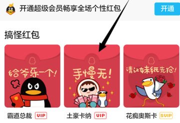 3、最上面的原始到不能再原始的默认红包,以下有四种新款的红包图案可供选择,根据你QQ会员的身份等级差异,也有部分是VIP会员和SVIP超级会员才能使用。