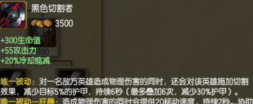唯一被动:对一名敌方英雄造成物理伤害的同时,还会对该英雄施加切割效果,减少目标5%的护甲,持续6秒(最多叠加6次,减少30%护甲)。