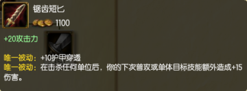 评价:锯齿短匕是一件前中期使用的装备,主要就是护甲穿透,这件装备后期,主要用来合成幽梦以获取更多的物穿。