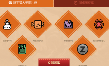 活动期间,在2016年01月26日零点后首次注册的《怪物猎人OL》游戏用户,即可领取新手礼包,使用QQ浏览器,还可领取QQ浏览器礼包,单QQ限领一次。