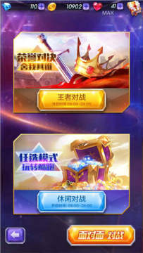 下面着重介绍的是王者对战,玩家可以进行王者对战,通过二人对抗模式取得晋升王冠的星星,取得胜利的一方会获得星星,三连胜会额外获得一颗星星。而失败的一方可能啥都得不到,更有可能掉星。这可是看技术的时候,各位喜欢对战的技术党们一定要加油哦!听说王者对战中有每日宝箱、首胜宝箱、升冠宝箱等哦,福利多多,等你来挑战。