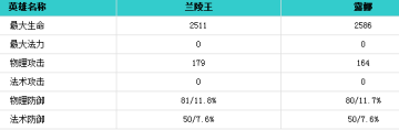 从英雄属性上看露娜的生命值要高于兰陵王,但是攻击力要比兰陵王低,但是相差甚少。