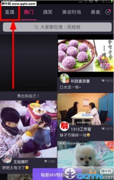1.进入到美拍,在首页上方的导航栏中,可以看到第一位的直播按钮,点击进入直播专区;