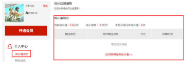 3、在个人中心的成长值动态中,你可以查看自己的QQ会员成长值,如图: