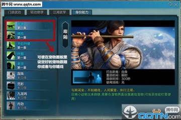 六、按P呼出技能界面,在身份技能中找到跟随和嬉戏,使用这个两个技能可使宠物跟随角色或是与角色进行玩耍。