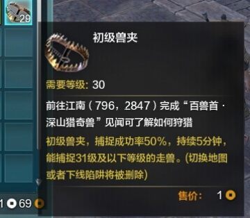 四、走近小动物(最好重合)对其使用兽夹,会有一定几率捕捉失败,失败后再次使用兽夹直到成功。