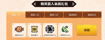3.根据猎人连续登录天数,可以领取精英猎人奋战礼包,每累计登录7天即可获得一次抽奖机会,所有登录记录,需在次日12:00后查询。