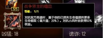 战争领主的嗜血的官网描述是根据你损失的生命值获得生命偷取效果,对抗小兵时获得50%的收益。