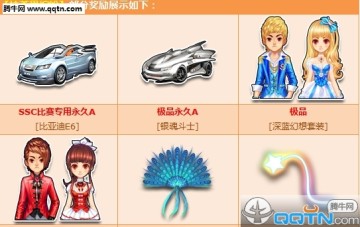 购【抹茶果缤纷】,有机会获得SSC比赛专用永久A车【比亚迪E6】、永久A车【银魂斗士】、极品【深蓝幻想套装】或其他奖励之一!该道具支持点券支付噢!
