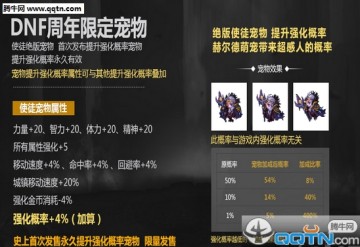 作者:腾牛小编 人气:0DNF使徒来袭宠物怎么得,绝版使徒宠物属性是什么?地下城与勇士最新开启了使徒来袭活动,玩家们购买299元的活动礼包,马上就能得到绝版宠物!可以永久增加装备强化成功率!快来和腾牛小编一起来看看DNF使徒来袭活动介绍吧!