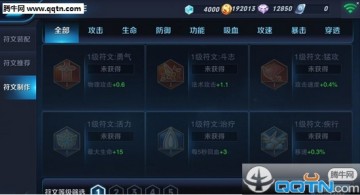 如果玩家没满30级,或者金币钻石不足,无法购买5级符文,也可以用4级符文替换。主要选择一些增加初始生命值和物理攻击防御的副本,大大提高巨灵神在战斗有个不错的开局。