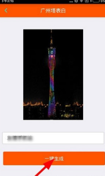 3、在广州塔表白的界面,输入你的名字,然后点击一键生成的位置!