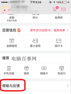 1、打开百度糯米,点击右下角“我的”,选择“帮助与反馈”,如图: